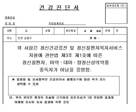활동지원사 들께서는 *건강진단서-향정신성 마약검사-를 검사하시여