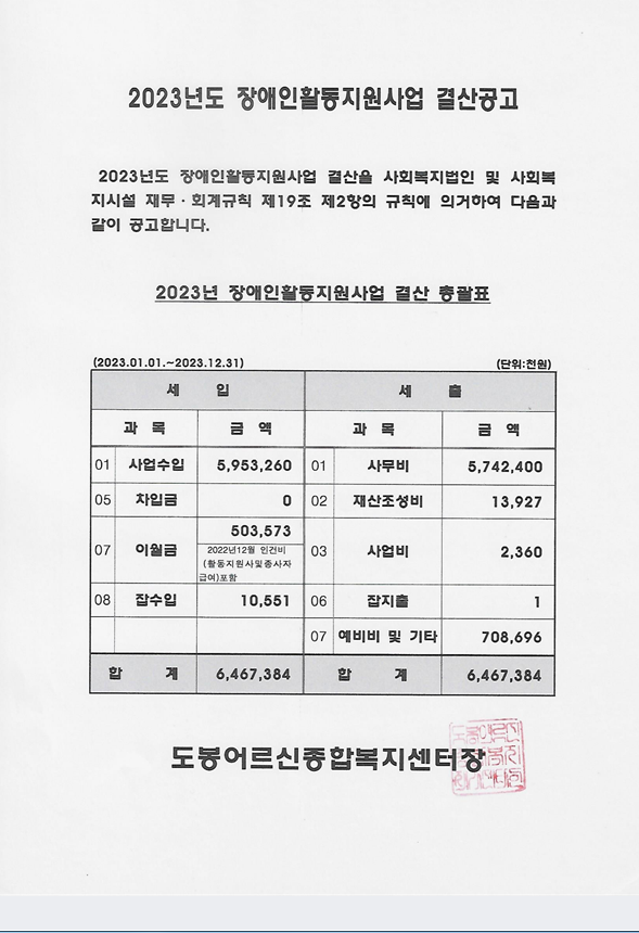 『2023년도 장애인활동지원 사업 결산 공고』