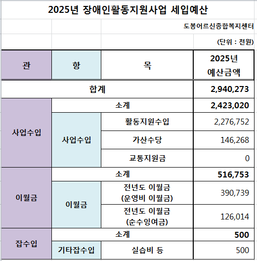 도봉어르신종합복지센터 2025년 활동지원사업 예산을 다음과 같이 공고합니다.