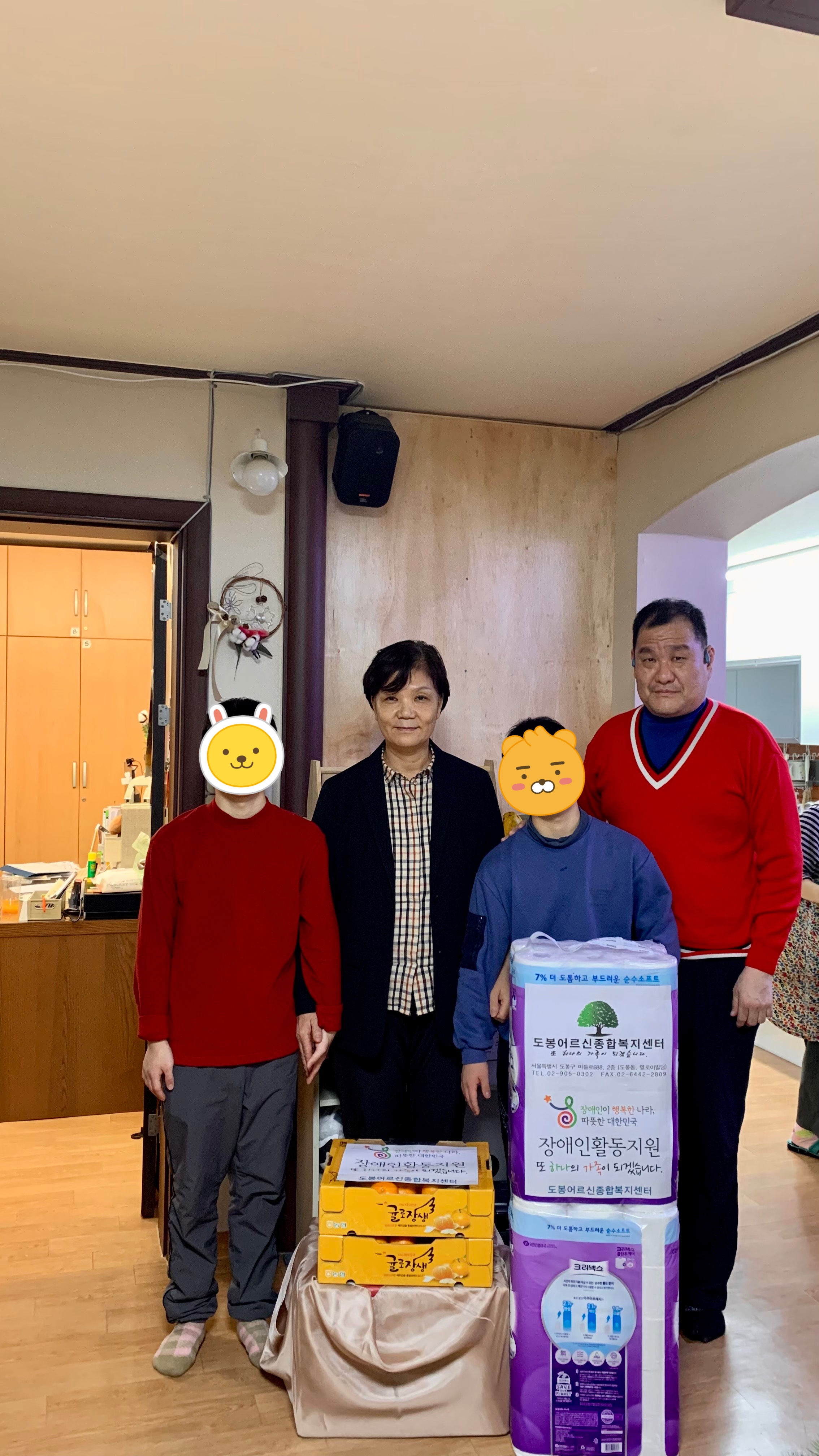 예수성심의 우리엄마네"무연고 장애아동 공동생활가정 최고관리자 0 615 2023.12.20 15:01 http://예수성심의 우리엄마네"무연고 장애아동 공동생활가정 + 234 예수성심의 우리엄마네"무연고 장애아동 공동생활가정"에 다녀왔습니다. 도봉 그린 주간보호센터"로 부터 후원 받은김장 김치를 "우리엄마네"로 후원했습니다.임직원 여러분들의 관심과 사랑(후원)을 부탁드리겠습니다. 감사합니다. 주소 : 서울 강북구 삼양로123길 14-19전화 : 02 – 995 – 8070 / 010 – 9231 – 8070 무연고 장애아동 공동생활가정
